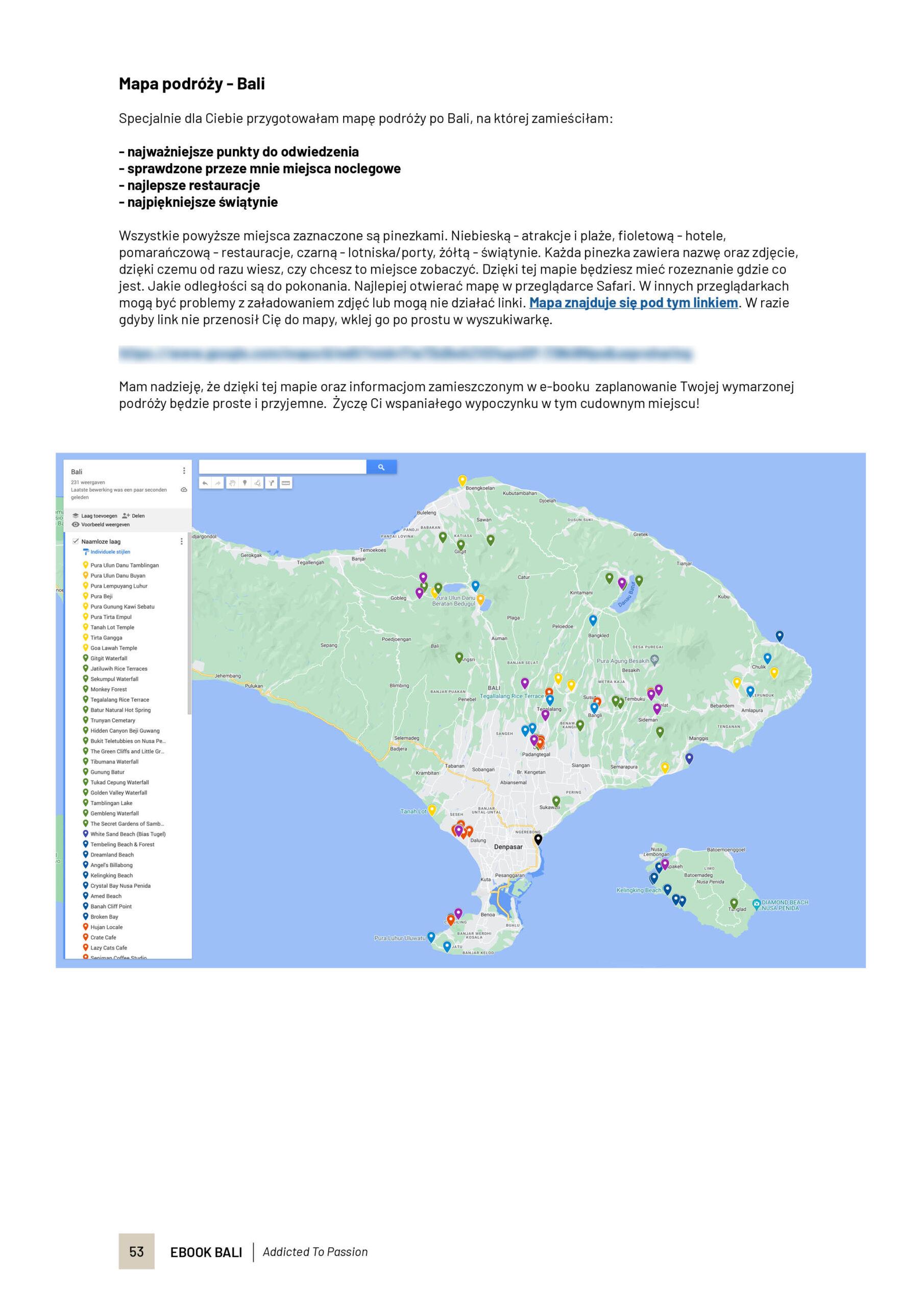 Ebook Bali – Plan Podróży & Mapa! Planujesz swoją podróż na Bali? Nie masz czasu na czytanie przewodników oraz przeglądanie dziesiątek blogów? Zrobiliśmy to za Ciebie! W tym e-booku znajdziesz nasz plan podróży oraz mapę wszystkich najpiękniejszych miejsc. Najpiękniejsze świątynie oraz tarasy ryżowe, najlepsze restauracje, wspaniałe przeżycia, przyjemne noclegi, ceny, oraz wiele innych przydatnych wskazówek, które pozwolą Ci samodzielnie zorganizować podróż marzeń!