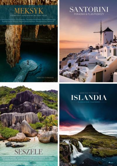 Aż 4 ebooki w jednej paczce! Tego jeszcze nie było! Kupując 4 e-booki oszczędzasz ponad 60%. Jeśli planujesz swoją podróż do Meksyku, na Seszele, Islandię lub Santorini to ta paczka jest dla Ciebie! Szczególnie jeśli nie masz czasu na czytanie przewodników oraz przeglądanie dziesiątek blogów? Zrobiliśmy to za Ciebie! W tych e-bookach znajdziesz nasze plany podróży oraz mapy wszystkich najpiękniejszych miejsc z powyższych zakątków. Najpiękniejsze plaże, najlepsze restauracje, wspaniałe przeżycia, wyspy warte odwiedzenia, przyjemne noclegi, ceny, oraz wiele innych przydatnych wskazówek, które pozwolą Ci samodzielnie zorganizować podróż marzeń! Nie przegap tego!