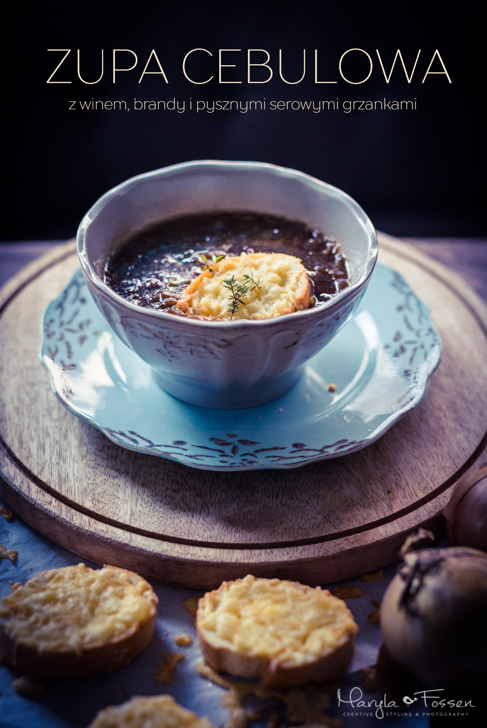 Uwielbiam zupę cebulową, a taka z dodatkiem brandy musi smakować wyjątkowo wybornie! Moja ulubiona to jednak wciąż norweska zupa rybna 😉