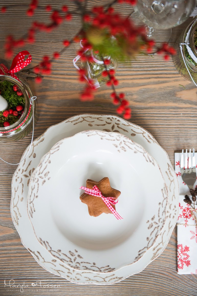 Kochani specjalnie na Waszą prośbę, świąteczna dekoracja stołu. W tym roku postawiłam na naturalne materiały. Nie ma żadnych bombek, błyskotek ani innych świecidełek. Wszystko z naturalnych składników hand made. Nawet pierniczki piekłam sama 🙂 Właśnie odnośnie pierniczków, to muszę wam powiedzieć, że to moje pierwsze w życiu. Wcześniej nigdy sama nie robiłam, miały być jeszcze ozdobione lukrem, ale już mi czasu zabrakło. Do tego wyobraźcie sobie, że cały dzień siedziałam w kuchni, zarabiałam, piekłam, wycinałam. W całym domu wspaniały zapach się roznosił, a Marcel wchodzi i od progu woła: Jezu co tu tak śmierdzi! Przypaliłaś coś? No ręce człowiekowi normalnie opadają.